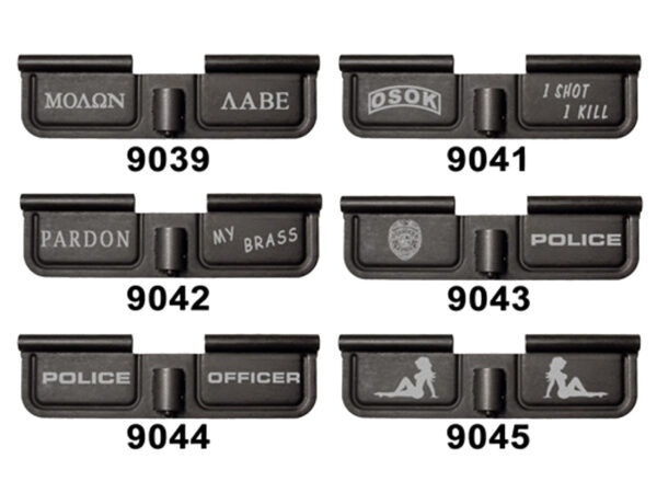 Be the first to review “AR-15 Lasered Dust Cover | Black Police Design | Gun Engineer”